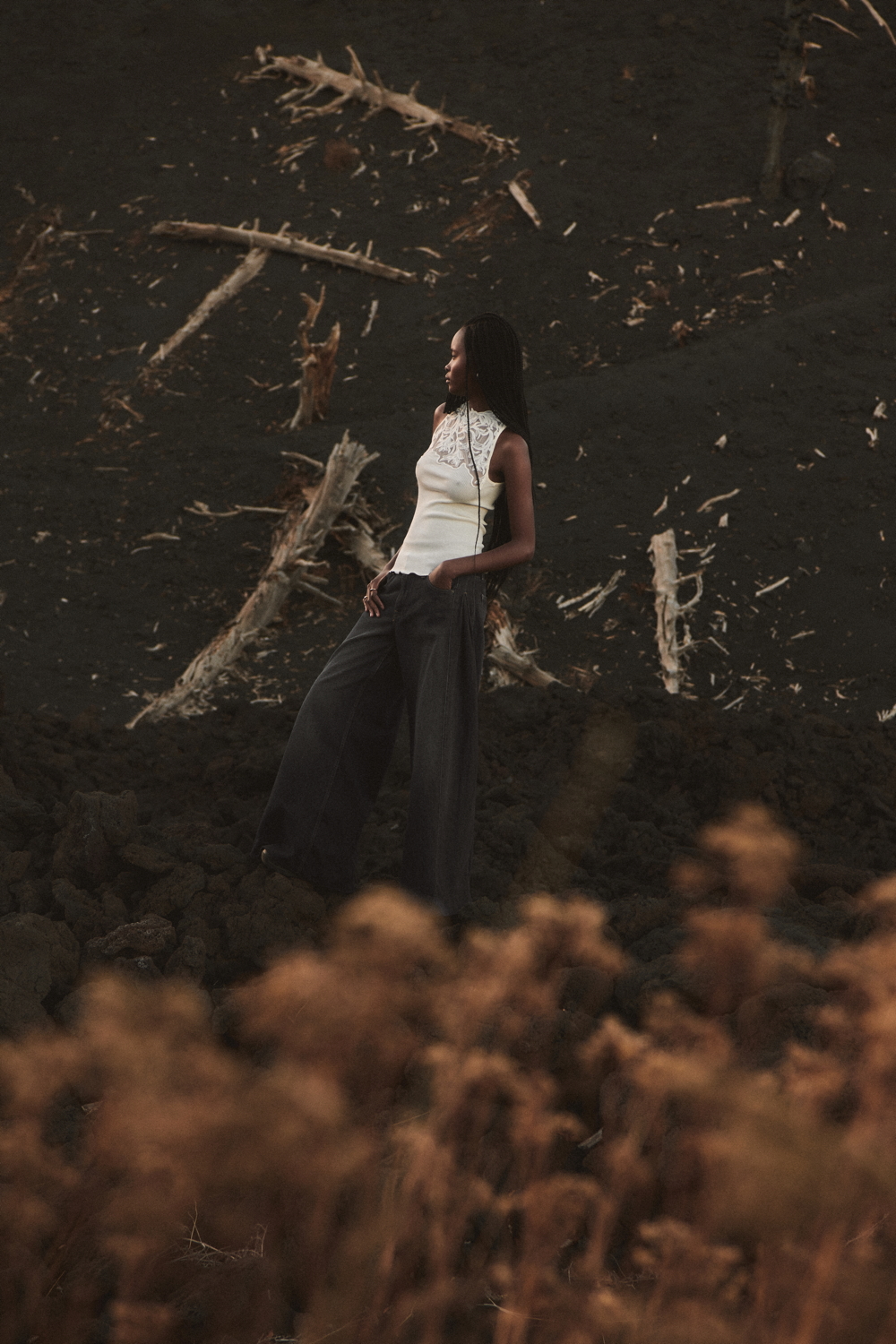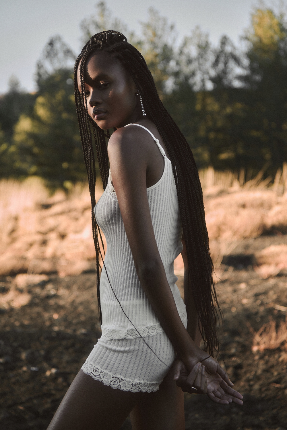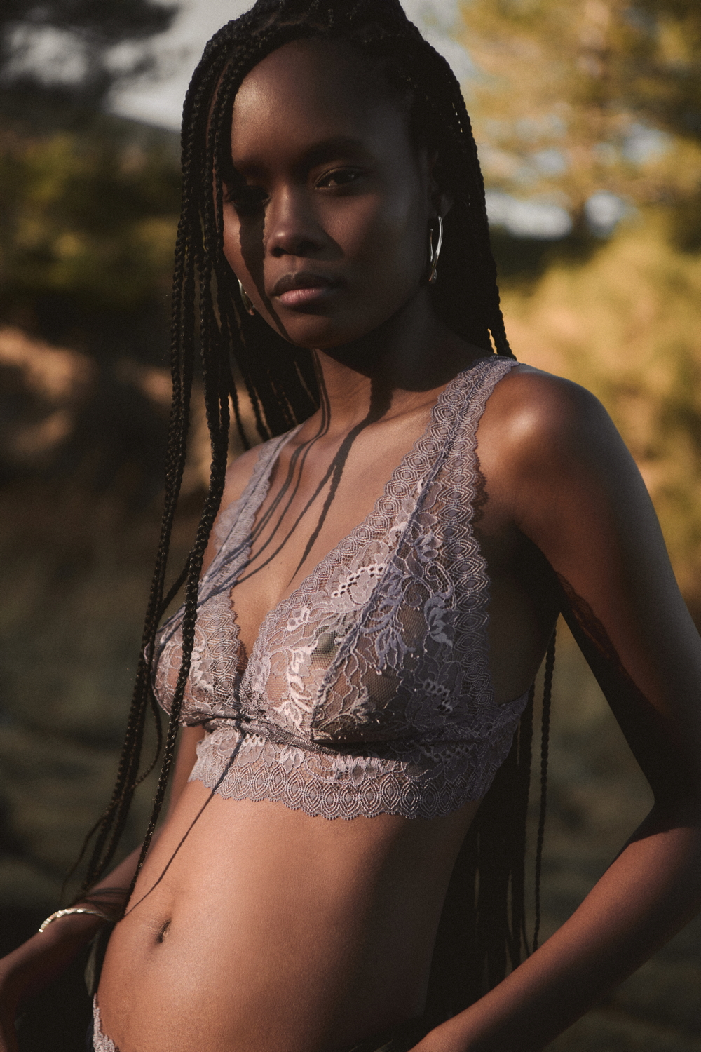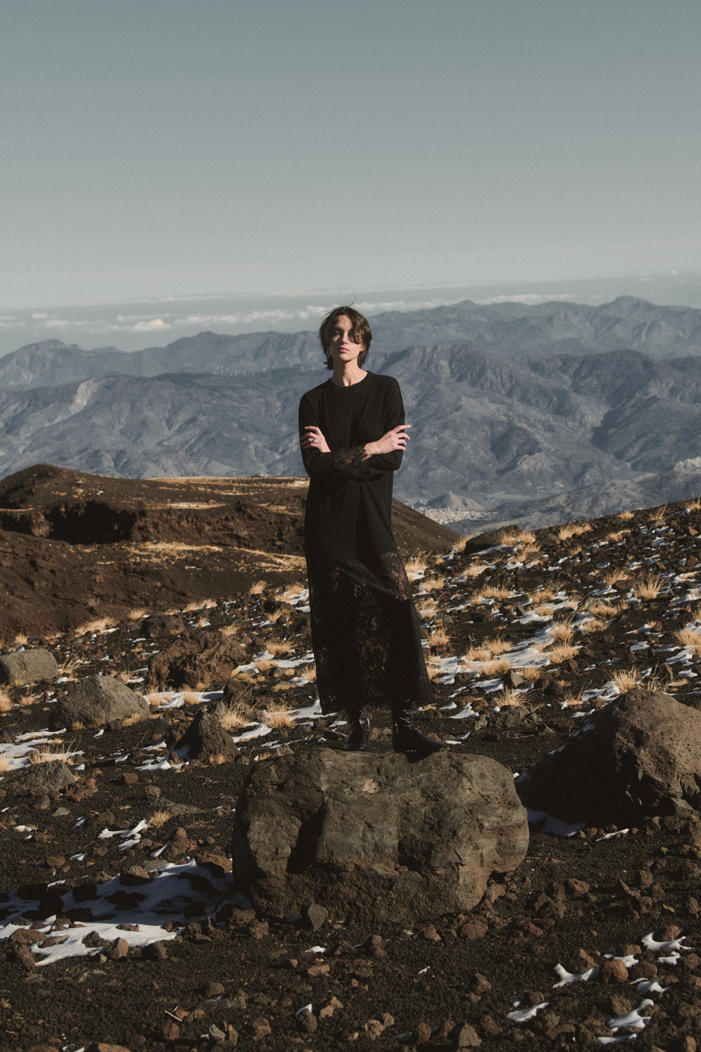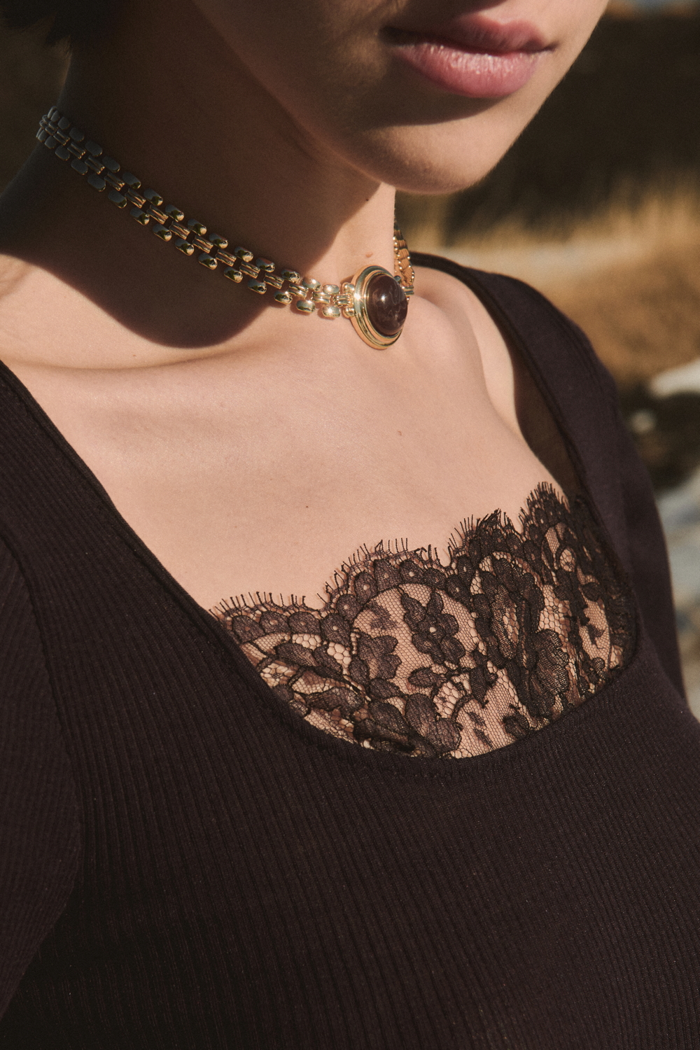 A true expression of the brand’s historical DNA, the ICONIC line continues to celebrate refined femininity through the excellence of lace and precious craftsmanship, reinterpreted with a contemporary eye. At its heart lies Leavers lace with a floral motif, used for both elegant under- jackets and sensual lingerie sets, crafted reproducing iconic styles drawn from Oscalito’s vintage archive, reaffirming the value of memory as a source of creative inspiration. Alongside Leavers lace, Chantilly lace stands out with a new pattern of sinuous, concentric lines inspired by natural textures. In its more traditional interpretation, it is also presented as a refined lace trim, enhancing under-jackets and lingerie sets, as well as in a floral lace laize that gives shape to dresses and knitwear with a more contemporary, casual design. Sophisticated details such as the geometric macramé insert, creating an elegant collar-like effect on knitwear, and the cutwork flounce with ramage embroidery on tulle, further enrich the collection.