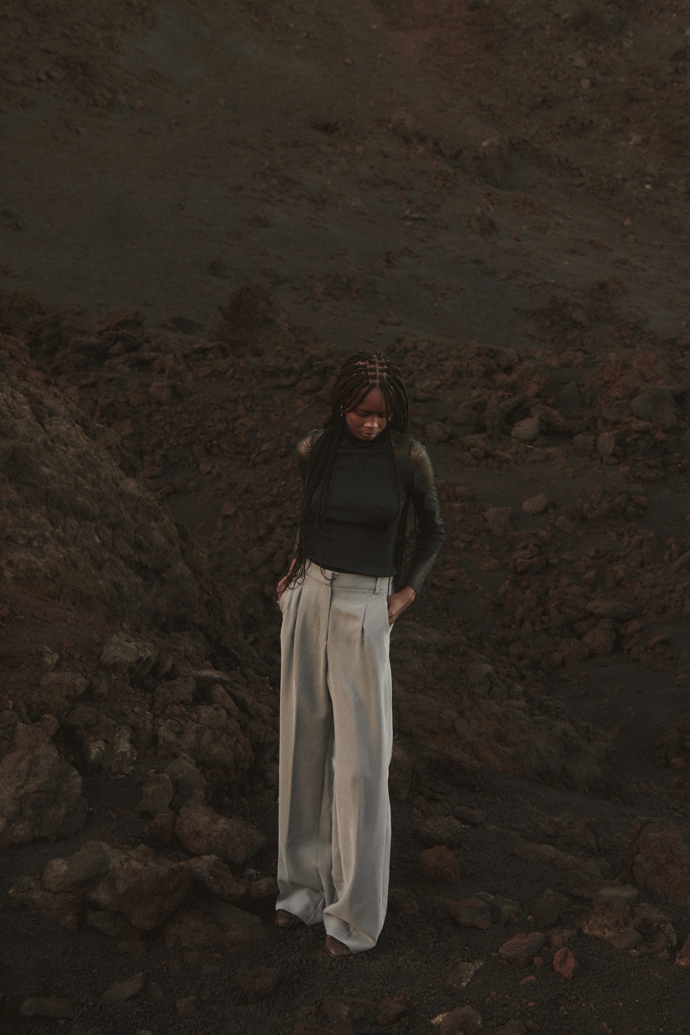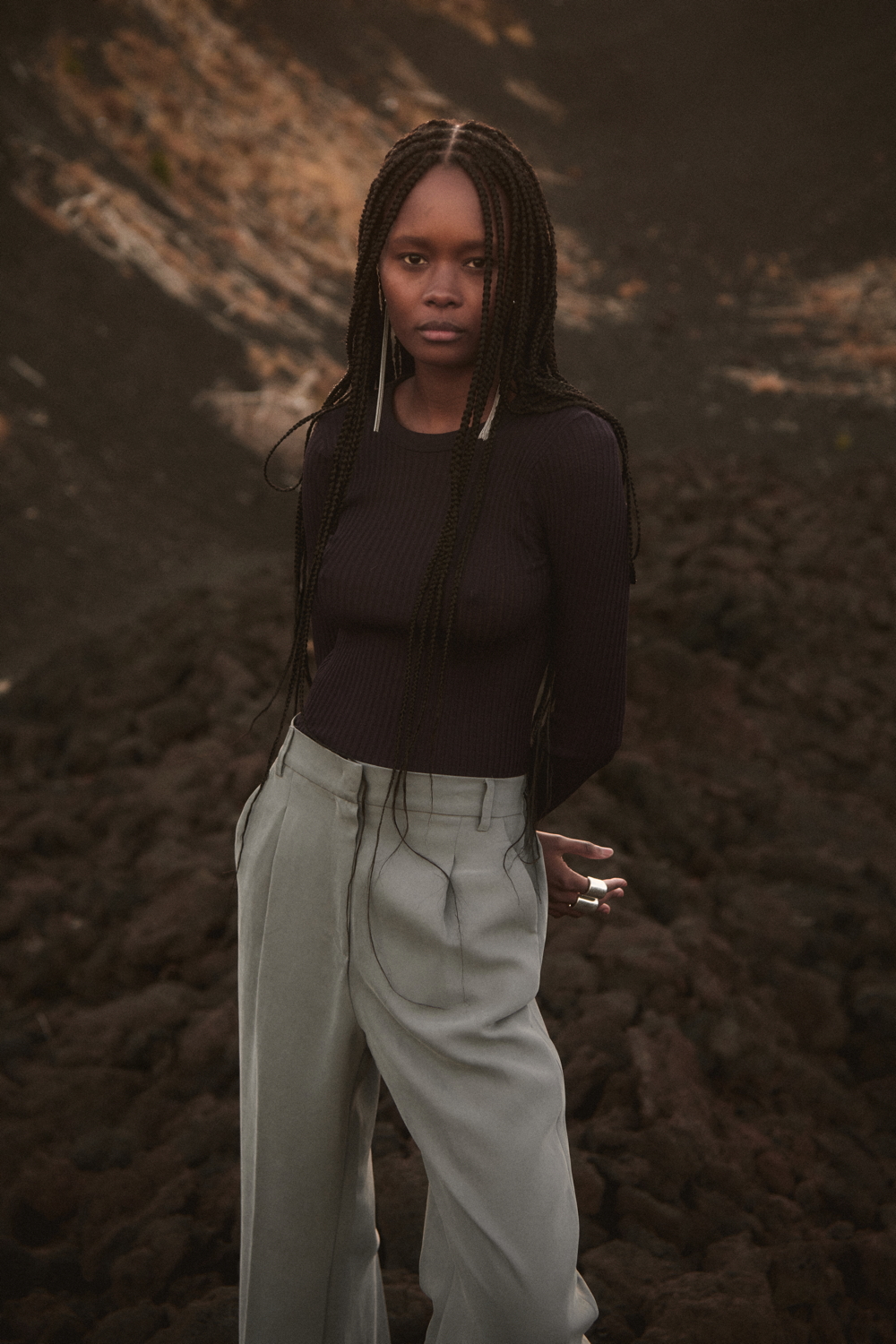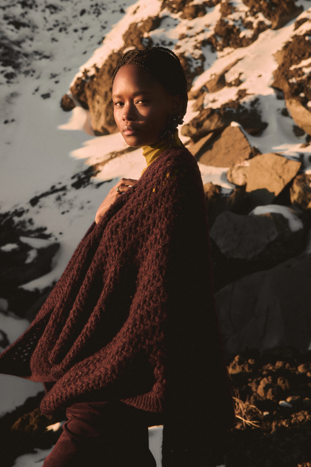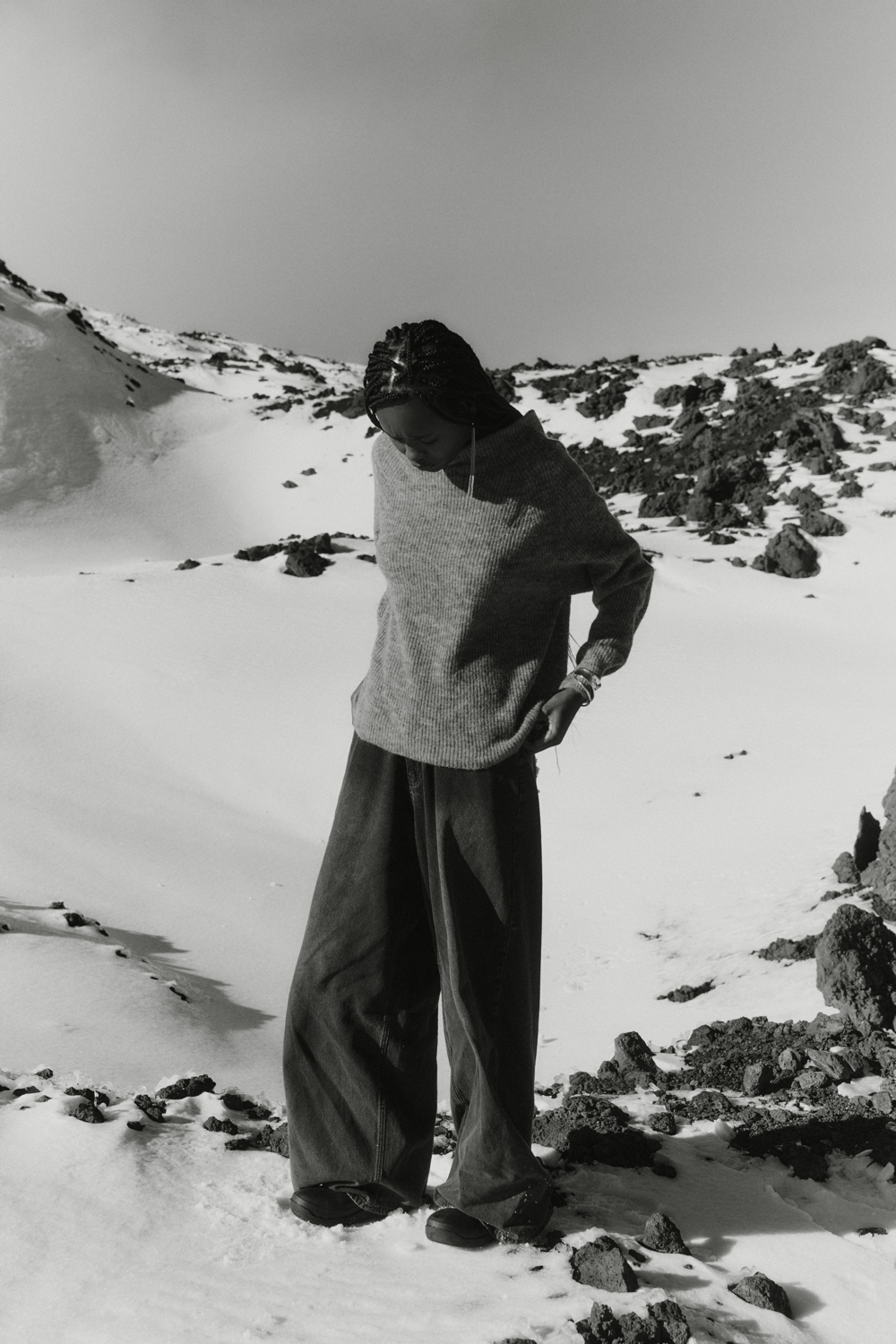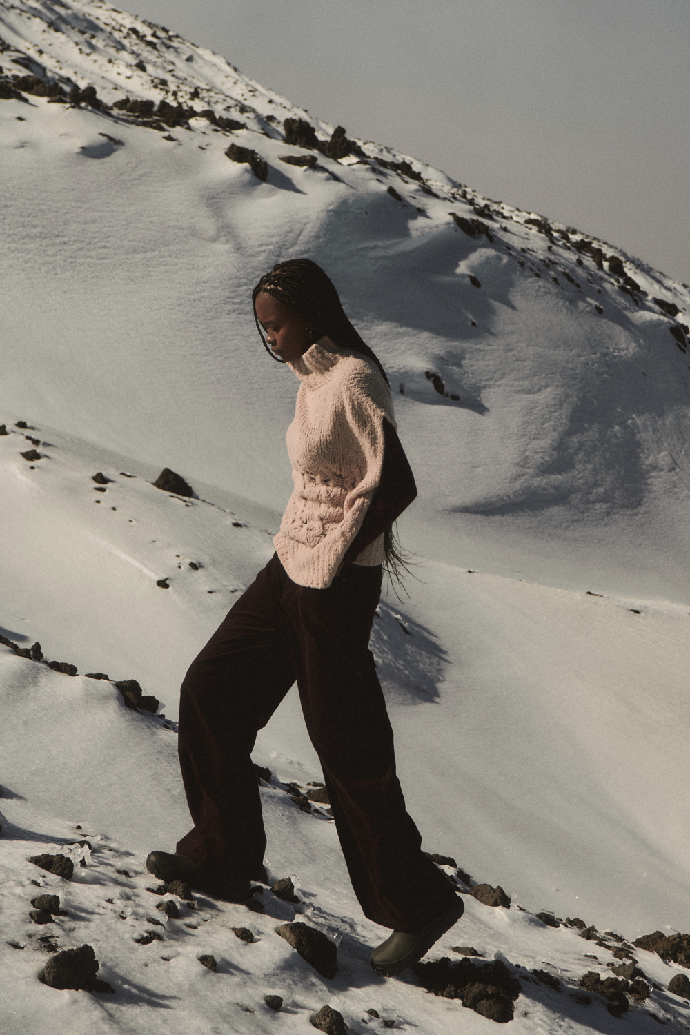 The TERRA line, an expression of Oscalito’s concrete commitment to responsible and conscious fashion, offers an essential and authentic vision of the winter wardrobe, where natural materials and clean design come together in a contemporary balance. A key highlight of the season is the wool and silk waffle fabric, with its distinctive three-dimensional texture, taken from the brand’s vintage archive and reinterpreted in modern loungewear sets composed of shirts with different necklines and wide-leg trousers. Alongside this, wool and silk fabrics with placed rib patterns enrich casual garments with a minimal character, while wool and silk flat fabric is used for knitwear with clean lines and an oversized fit.